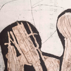 Cees Kortlang, 'Water vliegtuig'; 1988. Ets, oplage: 'eigen druk'. Abstracte voorstelling in verschillende tonen met schetsachtige lijnen. Afmetingen afbeeldingsvlak: 93 x 73 cm. Conditie: Werk is in goed conditie, lijst toont sporen van gebruik.