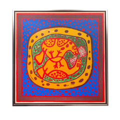 Corneille, 'Les oiseaux amoureux', 2009. Zeefdruk op linnen in zilverkleurige lijst, oplage van 130. Kleurrijke voorstelling met twee vogels in omhelzing en daar omheen een blauw-rood gestippeld kader. Signatuur Corneille 2009, midden onder. Conditie: goed. Afmeting lijst: 95 x 95 cm.