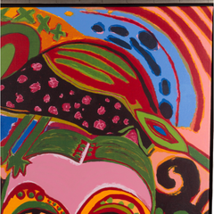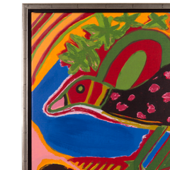 Corneille, 'Visage baroque', 2008. Zeefdruk op doek in zilverkleurige lijst, oplage van 130. Kleurrijke voorstelling met een gezicht en een vogel. Signatuur onderaan. Corneille (1922-2010) was een schilder en grafisch kunstenaar die begin jaren vijftig de conservatieve Nederlandse kunstwereld radicaliseerde. Samen met vijf andere invloedrijke kunstenaars, waaronder Karel Appel en Constant, richtte hij in 1948 de naoorlogse Europese expressionistische beweging CoBrA op. Corneille volgde tussen 1940 en 1942 cursussen tekenen en etsen aan de Academie van Beeldende Kunsten in Amsterdam, maar wordt over het algemeen beschouwd als een autodidactische schilder. Aanvankelijk sterk beïnvloed door het werk van Picasso maakte Corneille abstract werk. Vanaf de late jaren zestig krijgt Corneille's werk een meer figuratief karakter. In dit werk zijn vogels, vrouwen en bloemen vaak het onderwerp. Conditie: goed. Afmetingen: werk 90 x 90 cm, lijst 95 x 95 cm.