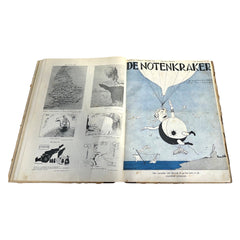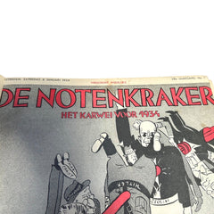 De Notenkraker, 28e Jaargang, 1934. Het tijdschrift 'De Notenkraker' was een politiek-satirisch weekblad tussen 1907-1936. Een zondags supplement bij het door de SDAP opgerichte dagblad Het Volk. Conditie: gebruikssporen, vergeeld en losse bladzijden. Afmetingen: 36,5 x 28 cm.