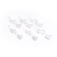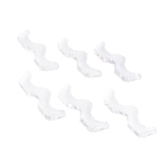 Glazen messenleggers, 6 stuks. De messenleggers zijn glad en hebben schuine hoekige uiteinden en een bolling in het midden. Datering: begin 20e eeuw. Conditie: In mooi gebruikte staat. Afmetingen: ca. 10 x 3 x 1 cm.