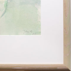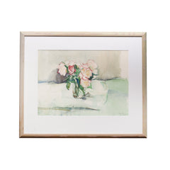 Joke Kokkelkoren, 'Roosjes'. Aquarel op papier in groene houten lijst met passe-partout. Afbeelding van witte roosjes in een glazen vaas. Signatuur rechtsonder. Datering: 1985. Conditie: gebruikssporen lijst. Afmetingen lijst: 72 x 86 cm; beeldvlak: 44 x 61 cm.