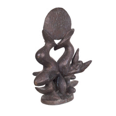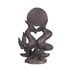 Nic Jonk, 'Pacific', 1983. Bronzen sculptuur, gegoten in een oplage van 12. Sierlijk sculptuur met links een zeemeermin figuur en rechts een walvis. Bovenop de staarten een ronde schijf die de zon of aarde symboliseert. Op de voet gesigneerd met jaartal. Een certificaat van echtheid wordt meegeleverd. Nic Jonk maakte dit beeld als een teken voor de zorg voor het (zee)milieu en in bijzonder de walvissen. Conditie: goed, met hier en daar lichte gebruikssporen. Afmeting ca: 41.5 x 28 x 16 cm.