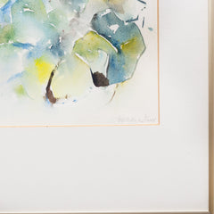 Willy van Haard, 'Cyclaam II'. Aquarel op papier in goudkleurige metalen lijst met passe-partout. Afbeelding van cyclamen in de kleuren lichtroze, groen en blauw. Signatuur rechtsonder. Datering: 1984. Conditie: verkleuring papier en passe-partout, gebruikssporen lijst. Afmetingen lijst: 71 x 50 cm; beeldvlak: 49 x 36 cm.